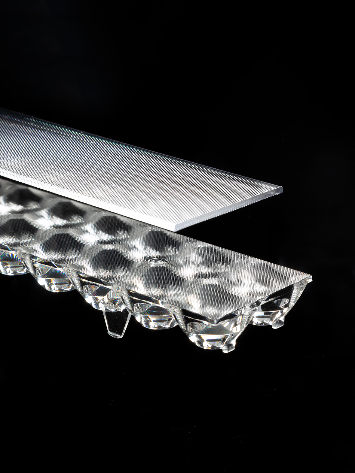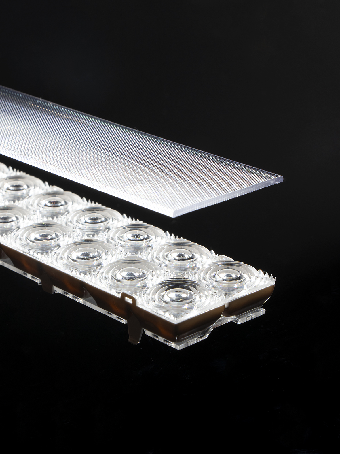 The first microprismatic lens offering precise optical control and delivering up to 4000 lm/m with UGR < 19 in an exceptionally compact form factor, available in 1‑foot increments. It provides glare‑free, comfortable illumination with reduced surface brightness, enabled by LEDiL’s proprietary optical design. Compatible with Two-row PCB modules with 3030 and 2835 LEDs.